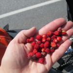 We made such good mileage yesterday that the ride into Delta Junction today was short and sweet. Passed a young woman picking wild strawberries on the roadside – we stopped and picked a bunch ourselves! Spotted another young moose along the way. On my first two bicycle rides to Alaska, I used the Tok cutoff to go down to Anchorage and never completed the Alcan on bike. This trip, we did! The Alaska Highway officially ends in Delta Junction. From there, we will take the Richardson Highway the final 100 miles into Fairbanks and the End of the Road.